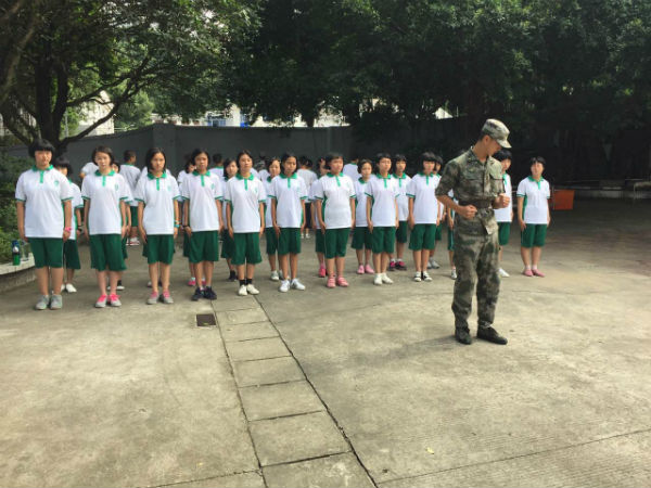 同学们在英姿飒爽的教官的带领下认真训练,丝毫没有半点偷懒。